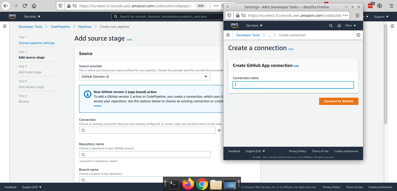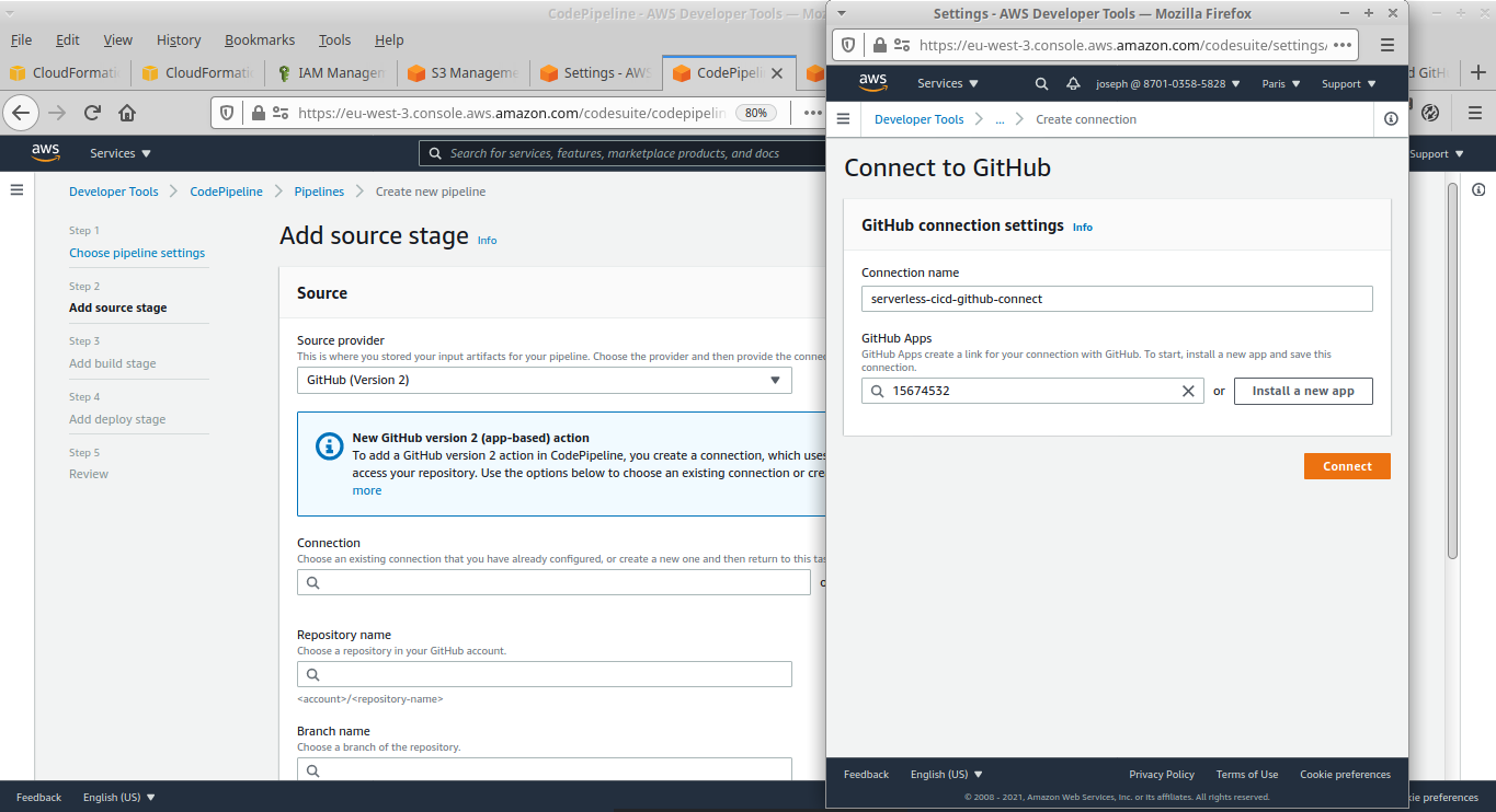 Nous allons dans un premier temps implémenter ce début de pipeline manuellement, ensuite nous allons l'automatiser via ̀CloudFormation