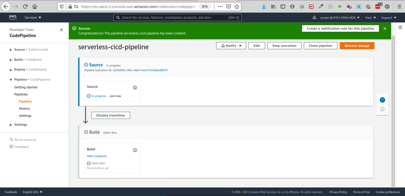 Donnez lui le nom "serverless-cicd-pipeline".