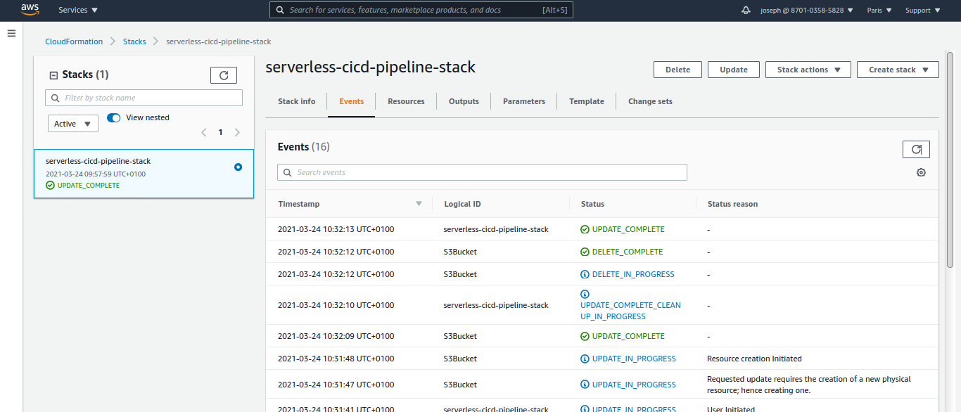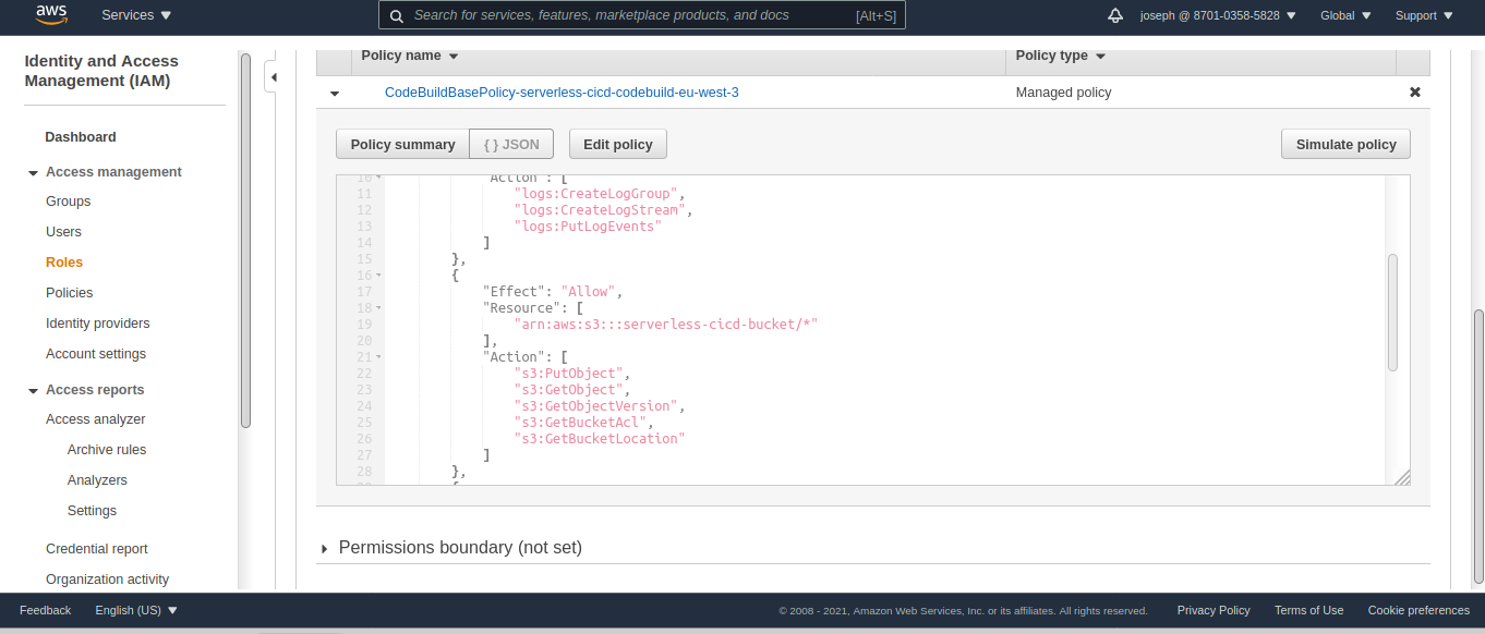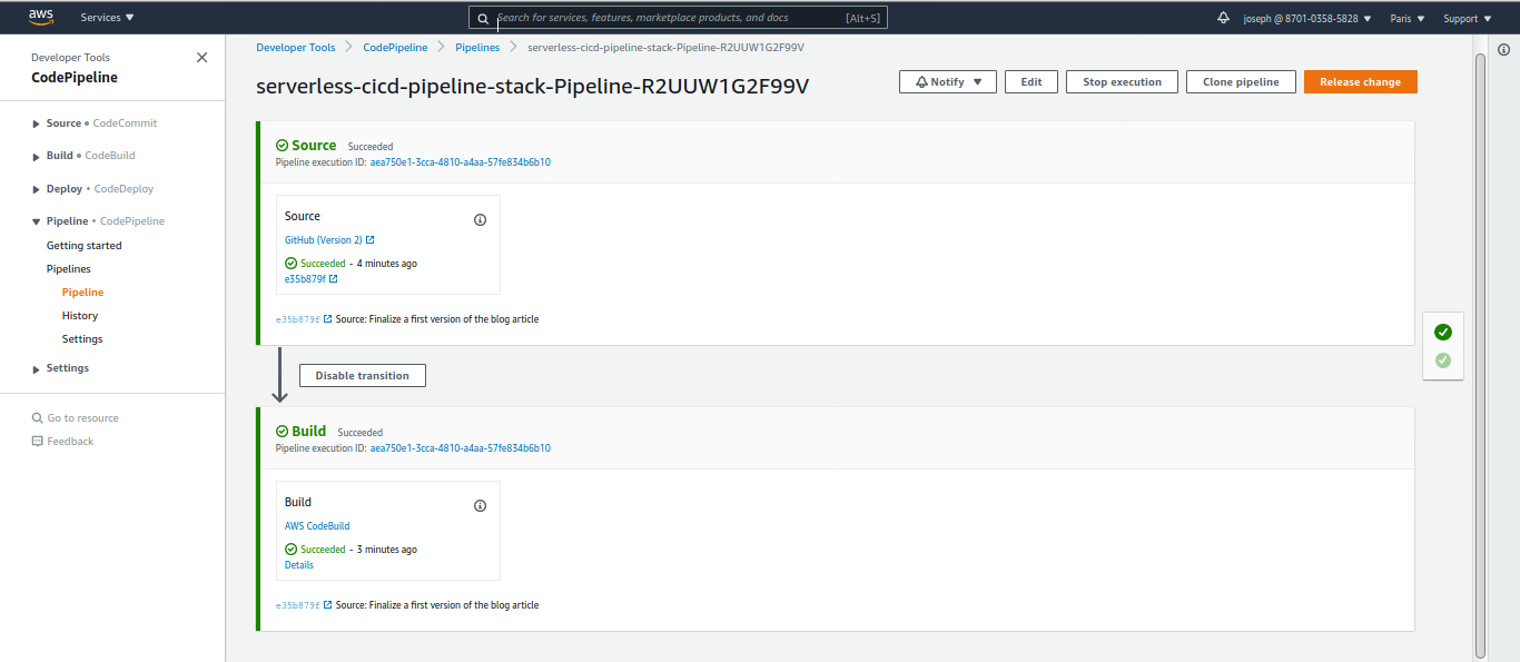 Pensez à copier en quelque part les policies IAM des rôles serverless-cicd-pipeline-role