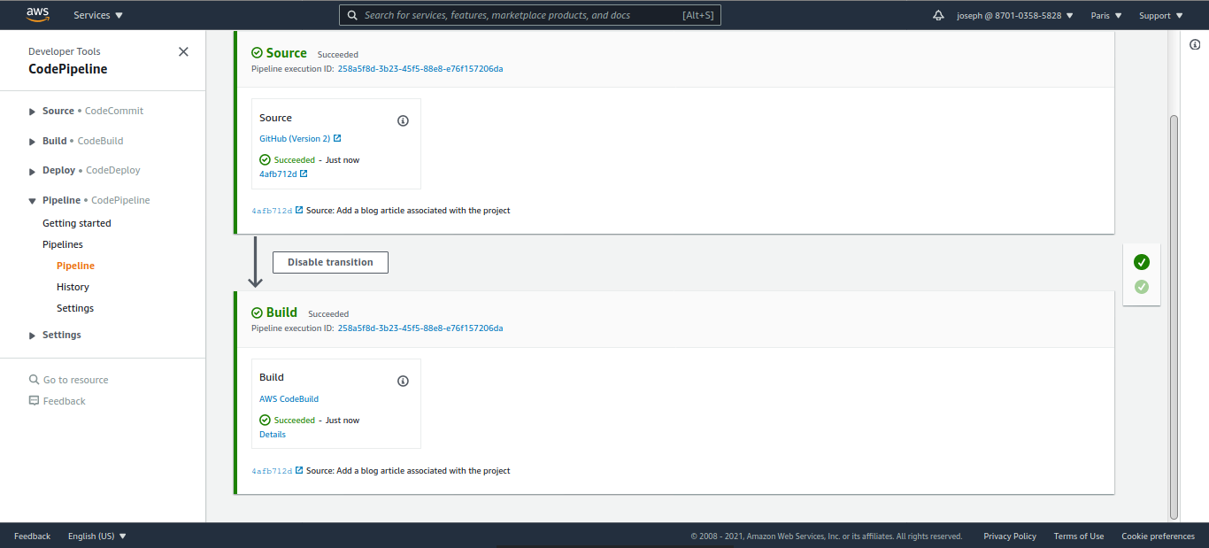 Mission accomplie !! Nous avons crée un début de pipeline récupérant les sources et les plaçant dans le buclek S3 pour être utilisé par les autres étapes et éléments du pipeline.