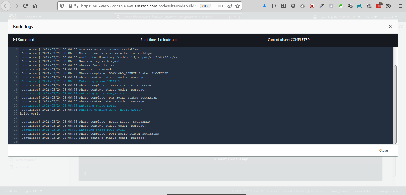 Et allons inspecter les logs de CodeBuild