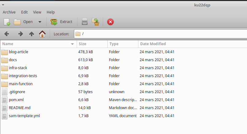 Vous pouvez utiliser le repo github suivant pour suivre cette partie du tutorial, ou vous repositionner sur une version fonctionnelle si jamais vous vous perdez (ce qui m'arrive quand je suis de tutos ^^) : https://github.com/mbimbij/aws-serverless-cicd-demo