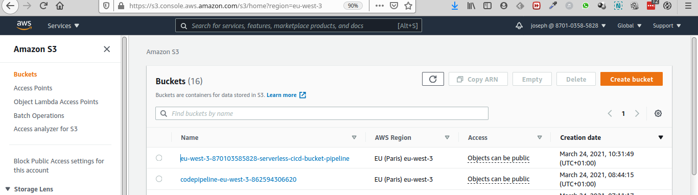 Créez un bucket, avec le nom "serverless-cicd-bucket"