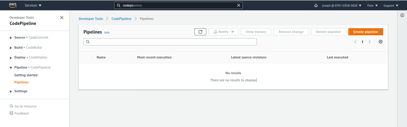 Cliquez sur "Create Pipeline" dans le dashboard de CodePipeline